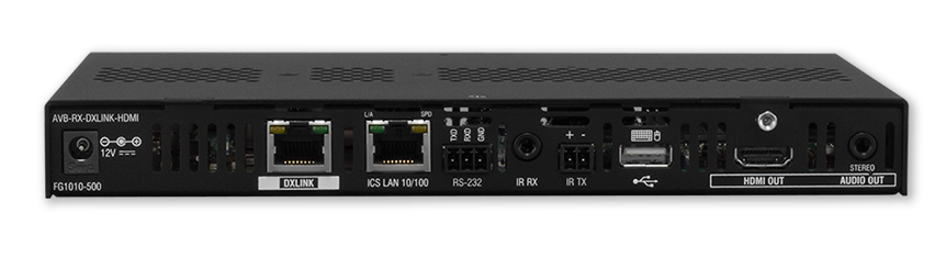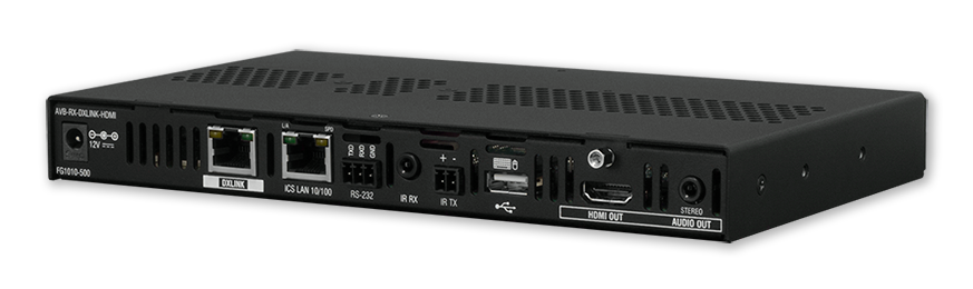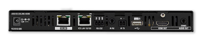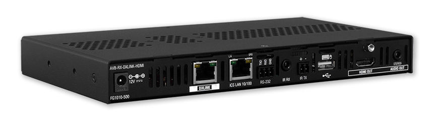 Модуль приемника HDMI DXLink получает сигналы HDMI и управления от удаленного модуля передатчика DXLink, настенной панели DXLink, Enova DGX или совместимого Enova DVX. Встроенные порты управления приемника могут использоваться для управления устройством назначения, а порт ICS Lan обеспечивает точку доступа IP, используемую совместно с Enova DGX или совместимым Enova DVX.