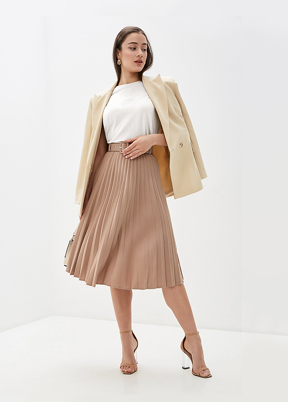 Плиссированные юбки не оставят равнодушных: носите их в теплое время года с босоножками и топом, а в холодное — с ботинками и свитером oversize. Универсальный элемент гардероба сочетается с майкой на тонкой бретели и с каблуком средней высоты. Дополняйте образ аксессуарами: кожаной сумкой, серьгами или ободком. Приобретайте look прямо в интернет-магазине и сэкономьте время на походах в торговые комплексы.